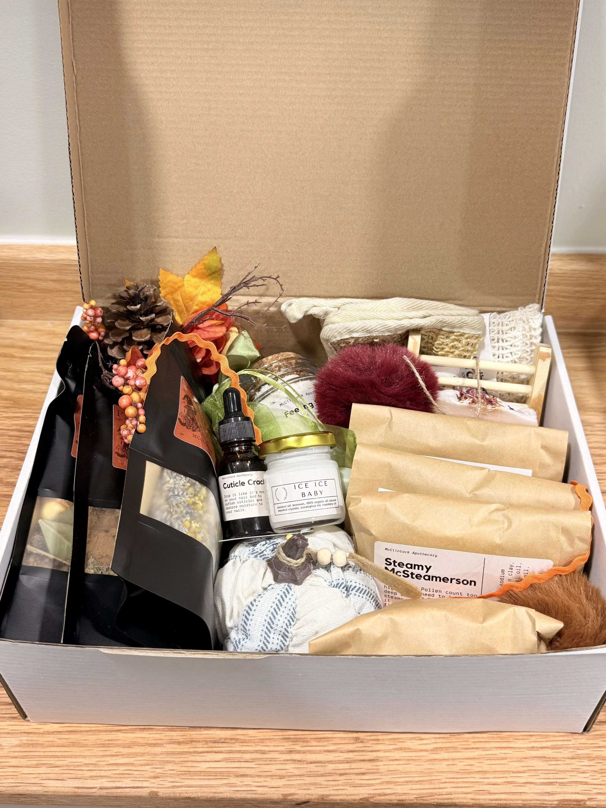 Care packages can range anywhere from $50-$200 depending on what you’d like to include in the basket. You can set a budget and I can design it for you, or you can hand pick items you’d like to include. Message me below to get started!